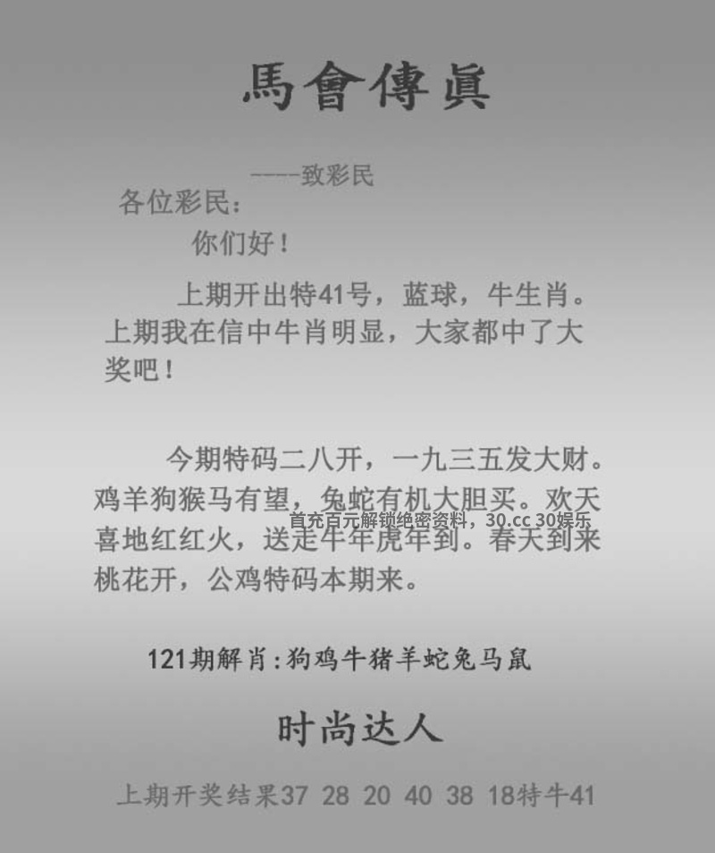 120期:【正版马会传真】{开:牛41}